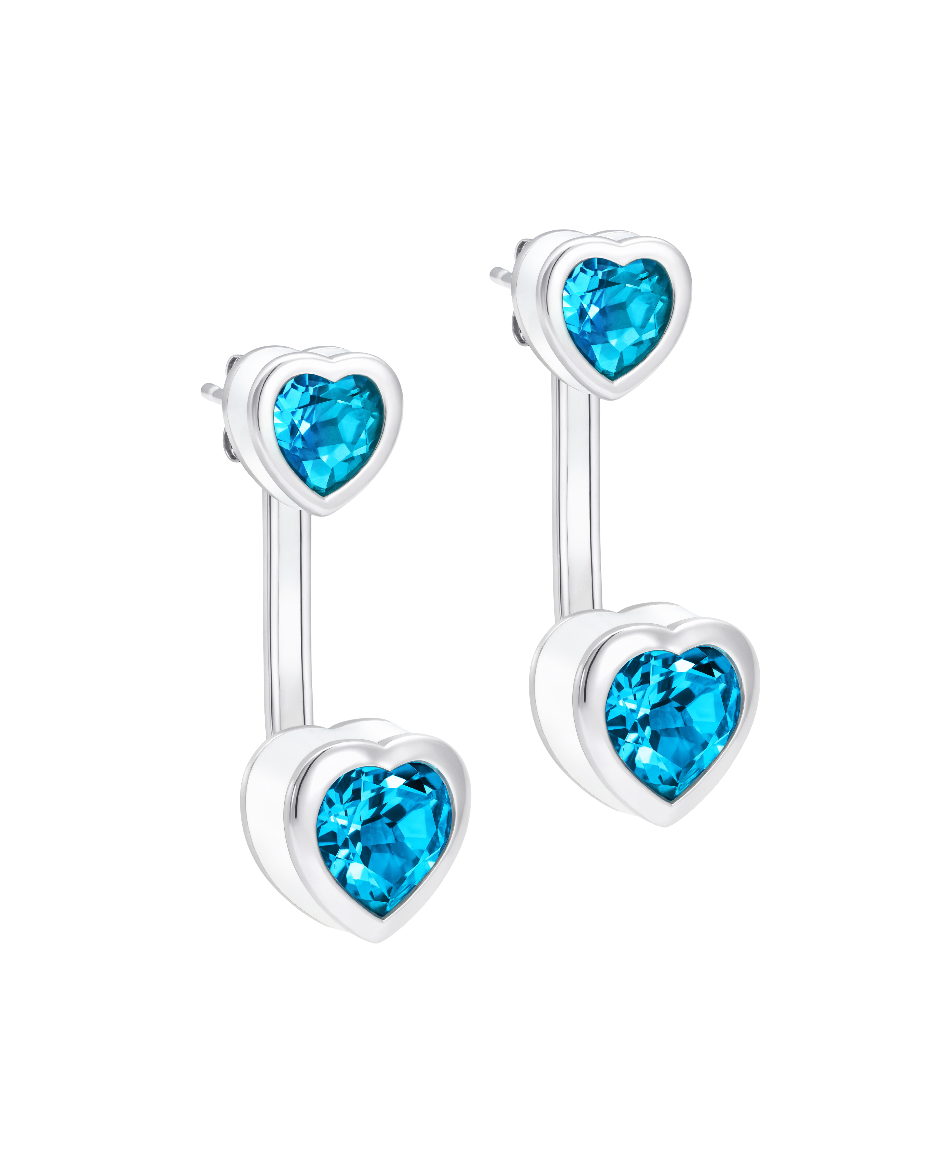- Heart Ostro® blue topaz studs paired with adjustable length 2ct topaz earring drops.