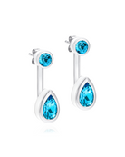 - Round Ostro® blue topaz studs paired with adjustable length pear earring drops