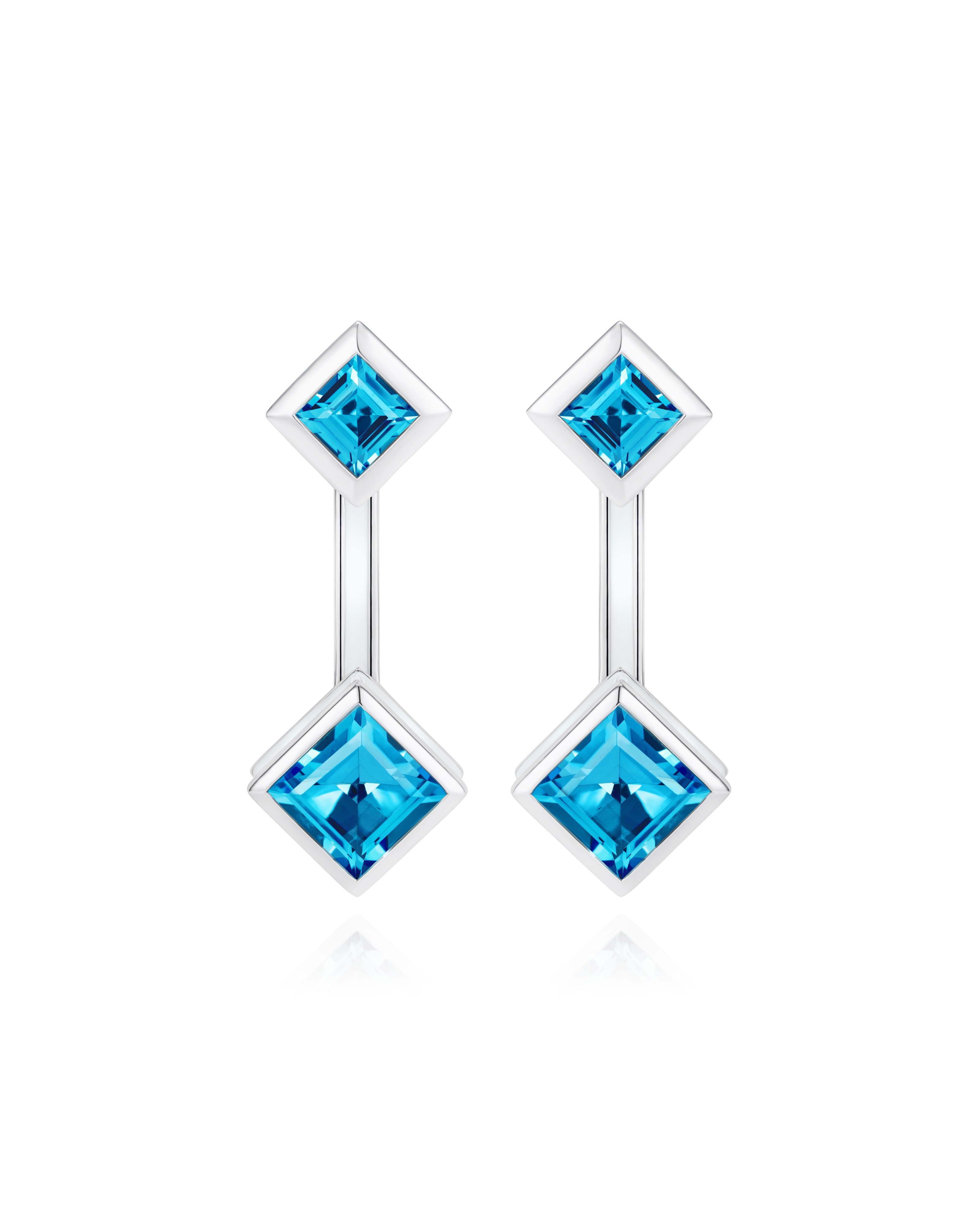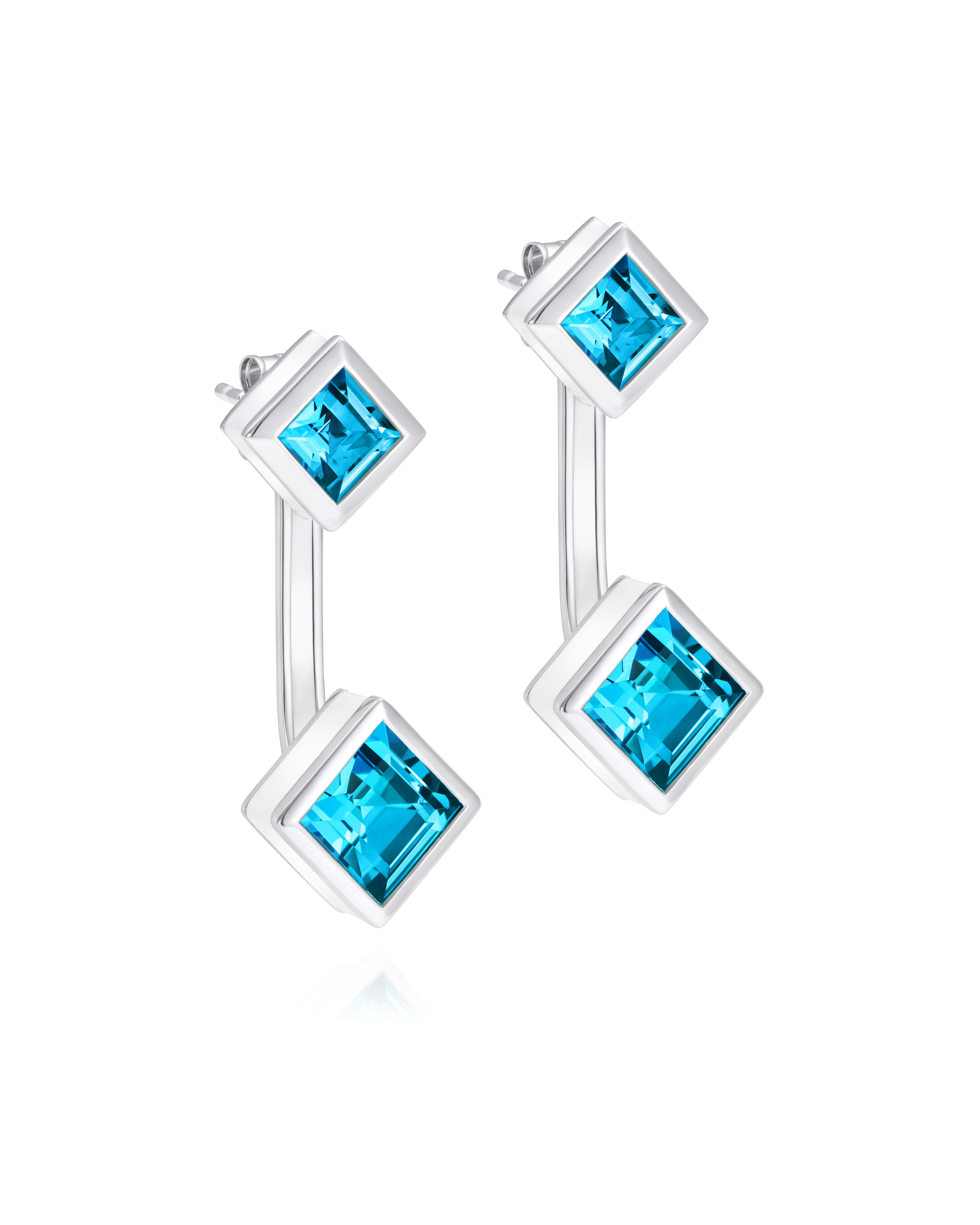 - Square Ostro® blue topaz studs paired with adjustable length 2ct topaz square earring drops